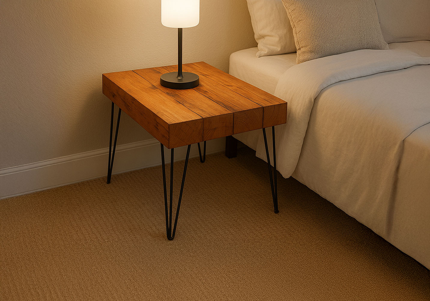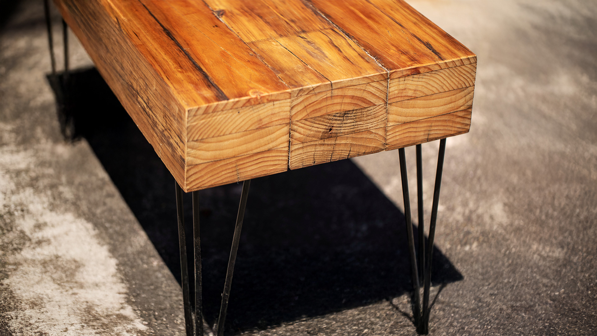 MetalBronte Block rests on slender metal legs that bring a light, modern touch to its blocky timber top. Minimal in form yet strong in structure, the legs create a striking contrast, allowing the reclaimed Oregon pine to take centre stage while adding a sense of elegance and balance to the overall design.