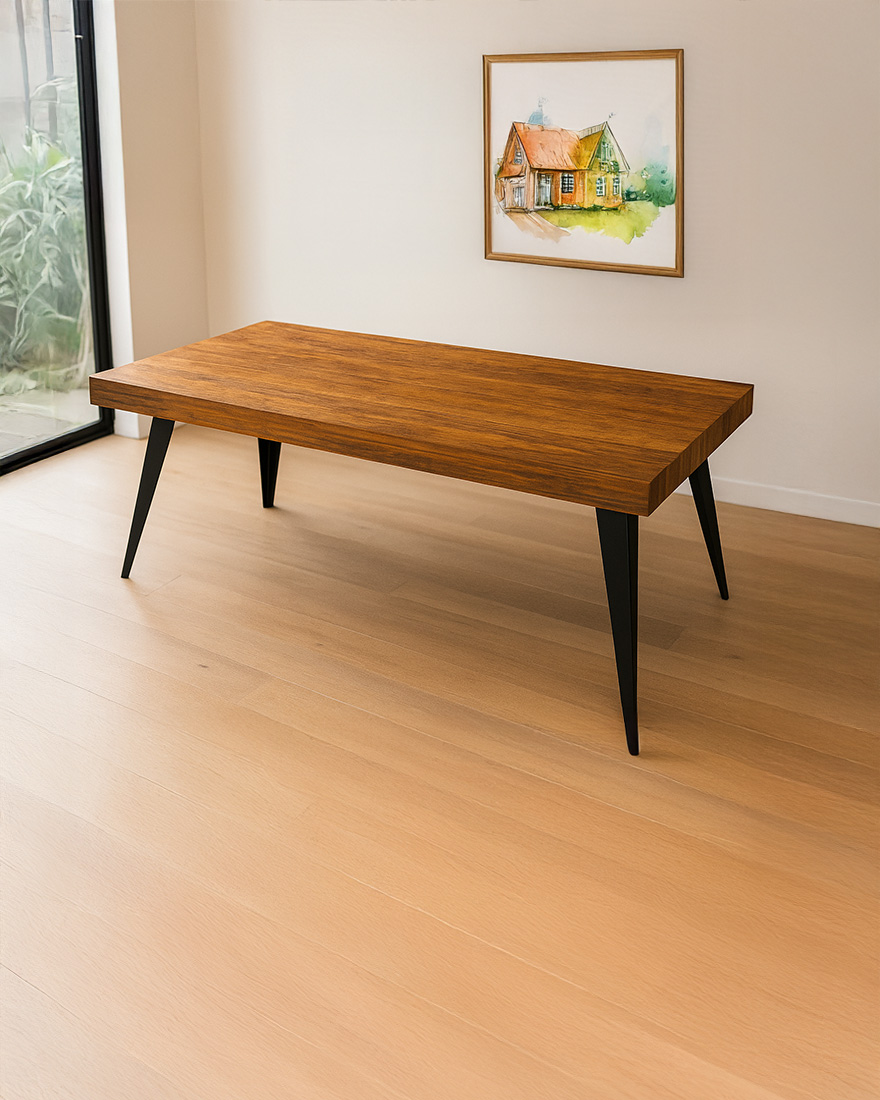 IronTo support its weighty hardwood top, The Mathúna is anchored by robust iron legs, custom-crafted for strength and stability. Their bold, industrial form complements the raw character of the reclaimed railway sleepers, ensuring lasting durability while grounding the table with a confident, balanced presence.